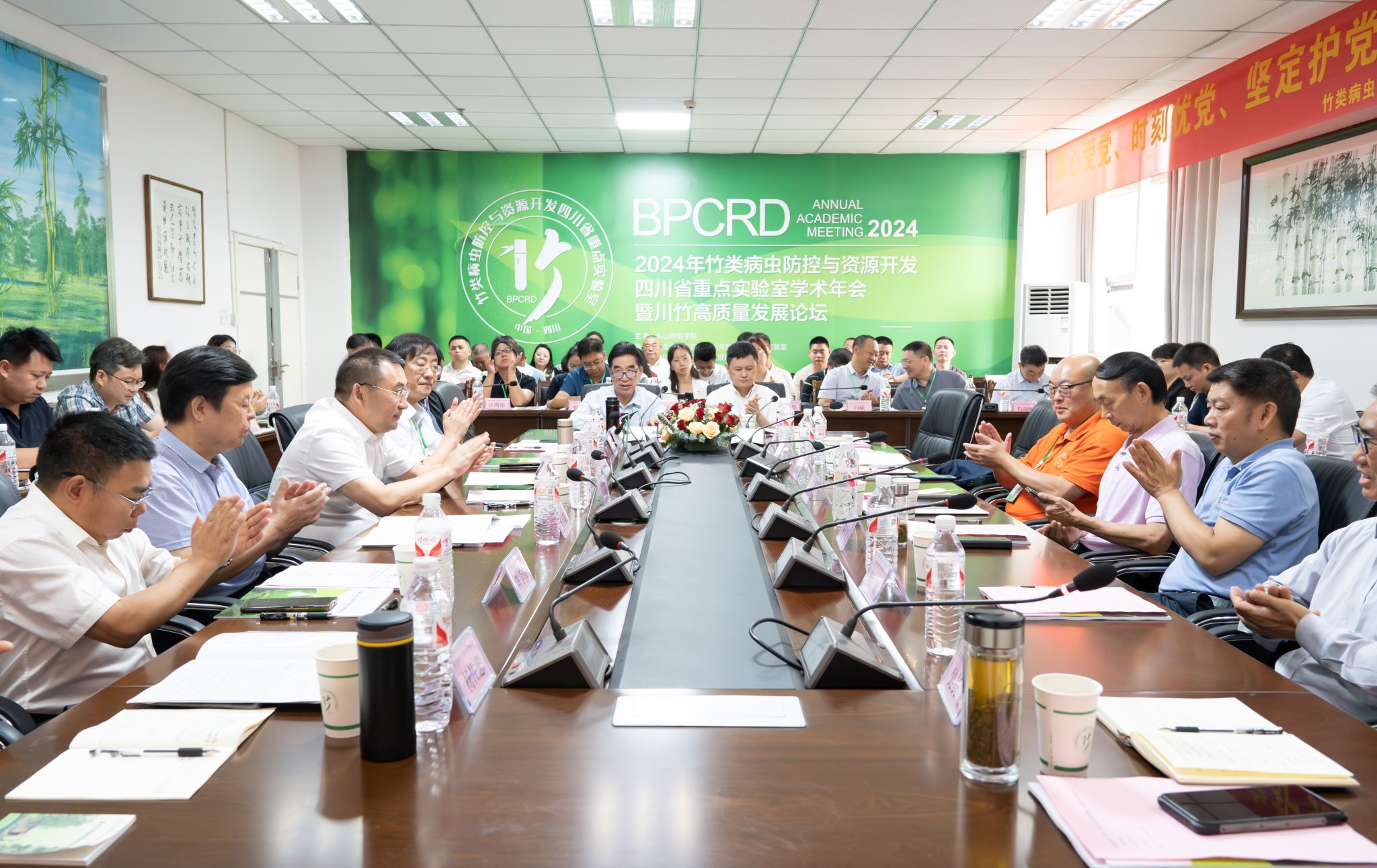 本网讯(文/梁晨 图/郭家梁、张启军)6月27日,2024竹类病虫防控与资源开发四川省重点实验室学术年会暨川竹高质量发展论坛在乐山开幕。本次会议由乐山师范学院主办,竹类病虫防控与资源开发四川省重点实验室、四川省林学会竹产业发展专业委员会、乐山市林业科学研究院、乐山师范学院生命科学学院、四川林业草原竹纤维营养创新开发工程技术研究中心等共同承办。